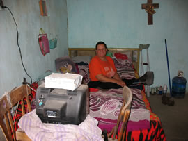 CELIA NÁJERA RODRÍGUEZ Por: Mercedes Aquino Celia no nació en Catorce y no recuerda cuántos años tenía cuando llegó. Sabe que era niña y la trajeron sus padres adoptivos Anastacio Nájera y Nasotera Rodríguez. Cuando era muy pequeña tuvo un problema de salud, poliomielitis y quedó lisiada irremediablemente. Sin embargo ha sabido lucharle a la vida y ello se manifiesta en la personalidad abierta y en la sonrisa que le ilumina el rostro. Cuando llegué a visitarla los trabajadores del INAH estaban terminando de sacar los escombros de su casa, y es que le arreglaron el techo, que antes era de lámina para cambiarlo por uno de hermosas vigas. Ella desde su lecho nos recibe emocionada. No son muchas las visitas que tiene. Celia nació en 1964 en Agua Caliente Nuevo León. A los pocos meses de nacida sufrió esta enfermedad y a la edad de dos años fue abandonada por su madre. Así nos cuenta: Recuerdo que ella pasaba a mi lado y no me hacía caso, hasta que terminó regalándome. Mis padres adoptivos sí que me dieron mucho cariño, me alimentaron, me dieron vestido y cuidaron de mí. Ellos se casaron en Catorce y tuvieron un hijo, mi hermano Agapito Nájera, quien ya murió. Mi mamá se llamaba doña Cuca y ella me tiró a la basura, con un pañal, no me quiso porque estaba enferma de mi pie. Me recogieron. Mi papá y algunos me reconocieron, pero yo nunca volví a ver a mi mamá. Ya no me quiso ella. Cuando era chiquita me tenían en un cajón de madera. Estaba bien flaca de a tiro. Y ahora aquí estoy. Yo ya los perdoné, nunca les deseo muchas maldiciones. Dicen que de grande me andaba buscando mi mamá pero yo ya no quise. ¡Cómo va a dejar a una niña chiquita así nomás! Nunca fui la escuela porque estaba mala de mi pie. Hago unas pocas letras. Me hicieron operaciones en las piernas y en la cabeza. Si yo estuviera buena ya me fuera a Monterrey para trabajar. La gente me da mis centavitos, salgo los domingos y sábados a ver que dios me da. Todo tengo, mucha gente me ayuda del pueblo. Muchos me ayudaron y apoyaron, me dan despensa, alimento y otras cosas. Estoy guardando un poco de dinerito para componerme mis dientes, pues hace mucho que no los compongo. Vivo sola, llego en la noche, cierro mi puerta del zaguán sola todo el día, toda la noche y toda la mañana. Catorce esta bonito, hay mucha gente, hay mucho movimiento en la calle, no me aburro. Todos me conocen. Tengo mi televisión y mi radio, nomás me falta la luz el foco. Uso veladoras pero ya me dijeron que van a venir a arreglarlo. Pues yo tengo un novio pero no es de aquí sino de Matehuala. El viene a verme pero ahí nomás se para y ya, nomás me saluda porque luego la gente va a decir que si estoy panzona. Hace poco vino un hombre y abusó de mi. Me lastimó aquí en el cuello. Me dejó morado, fui al doctor. Ese hombre es de Los Catorce, un borrachillo. El doctor hizo un papel de que era un abuso. No hice una denuncia, yo misma iba a denunciarlo pero no lo he visto y no se donde vive y donde lo voy a encontrar. Se aprovechan porque estoy sola y no vive nadie mas aquí. Cierro bien la puerta pero estoy bien y no tengo miedo. Yo me cocino, tengo una estufita chiquita. Ayer preparé una comida bien sabrosa con papas y blanquillos. He soñado estar buena de mi pie, me gustaría ponerme mas guapa, mi cabello mas largo, una ropita limpia veo a aquella gente y pienso yo esa gente es rica y tiene mucho, yo estoy pobre usted siquiera está casada y tiene a su esposo, a sus hijos. Mi tío se llama don Cecilio Valle. Es el dueño de la casa. Viene en Semana Santa con su familia y también en la fiesta de octubre. Este cuarto se llena de gente. Él me ayuda con unos centavitos. Para pagar el agua, la luz, todo. Me trae mi ropa, me trae cosas. Pa' que me quejo de nada, lo malo son los chismes. A veces la gente habla de mí, que si cómo me visto, que si salgo en la noche. No conozco Matehuala ni conozco Cedral; dicen que está bien bonito. No me he paseado más que a San Luis, la vez que me llevaron a cambiar mi aparato. Yo le diría a la gente que tiene todo que hay que seguirle a la lucha, hacer la batalla. Una vez me querían llevar a un asilo, pero ya no se arregló, ya no me llevaron. Sí me gustaría irme a un asilo, porque el día de mañana pues ésta no es mi casa y me quedo en la calle. |