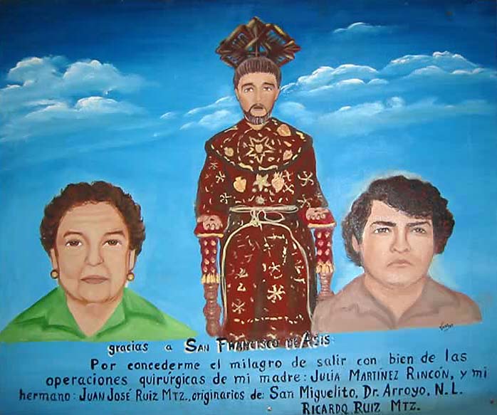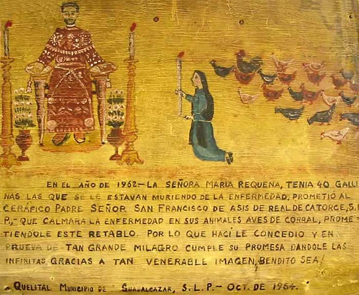 In the sanctuaries of the Basilica de Guadalupe in Mexico City, Nuestra Señora de San Juan de los Lagos (in Jalisco), San Francisco de Asís (Real de Catorce, San Luis Potosí), Santo Niño de Antocha (Fresnillo, Zacatecas) and the Virgin of Dolores de Soriano (Colón, Querétaro), among others, one can appreciate this very interesting aspect of the history of Mexican art.
