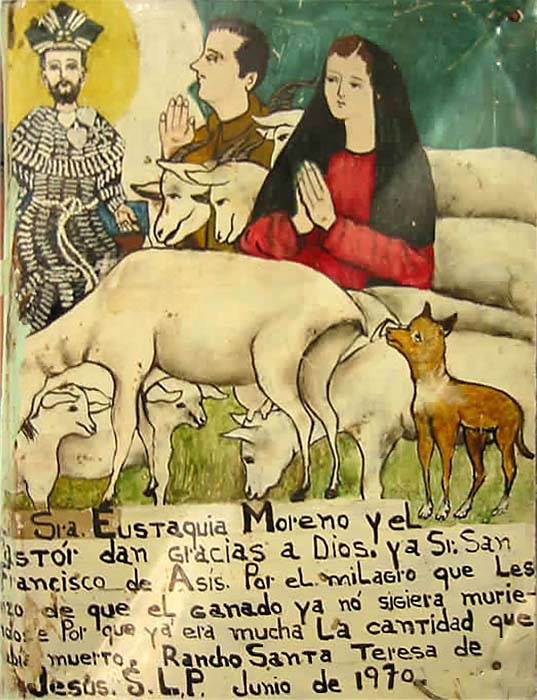 During this period, so traumatic for the indigenous inhabitants of old Mexico, the Catholic Church tried to eradicate the ancient beliefs and impose the "one true faith". From this clash of two antagonistic visions of the world, there arose an authentic mestizo ideology. Little by little the old idols of the home altars gave way to retables with Catholic images, and the characteristic of the prehispanic gods were projected onto them. The counterpart of the retable, or rather another of its uses, is the exvoto or votive offering (from the Latin: ex voto), an object offered to a divinity in gratitude for a favor received.