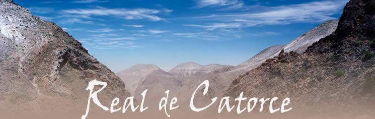 Cuando hablamos de Catorce, nos referimos a una región claramente definida y que comprende la sierra de Catorce y "el bajío" de Catorce. La porción serrana es un macizo montañoso que cabe fácilmente en una superficie más bien pequeña, de 50 x 20 kilómetros y que sin embargo es una de las sierras más altas que se encuentran en el altiplano central. Sus cumbres más altas rebasan los 3.000 metros y esto explica en gran medida la espectacular belleza que caracteriza la región. Catorce es un municipio cuya cabecera es el pueblo de Real de Catorce (1.200 habitantes hoy en día) que se encuentra a 2.800 metros sobre el nivel del mar. |